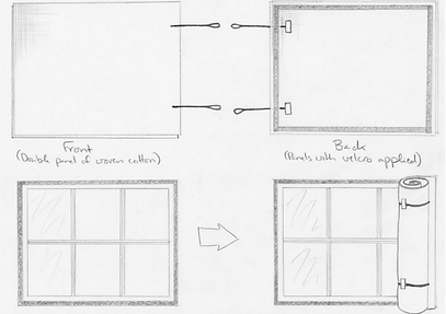Cotton panels were sewn together, filled with fillers, and then installed on to the windows to help insulate the houses better